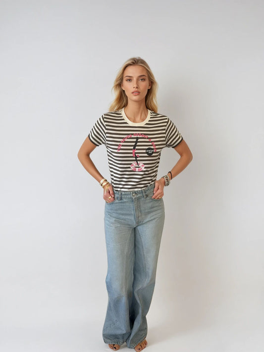 A lovely fun & feminine t shirt! Beautiful fabric, well made garment. I love the relaxed style, looks great with a linen skirt, jeans or shorts.