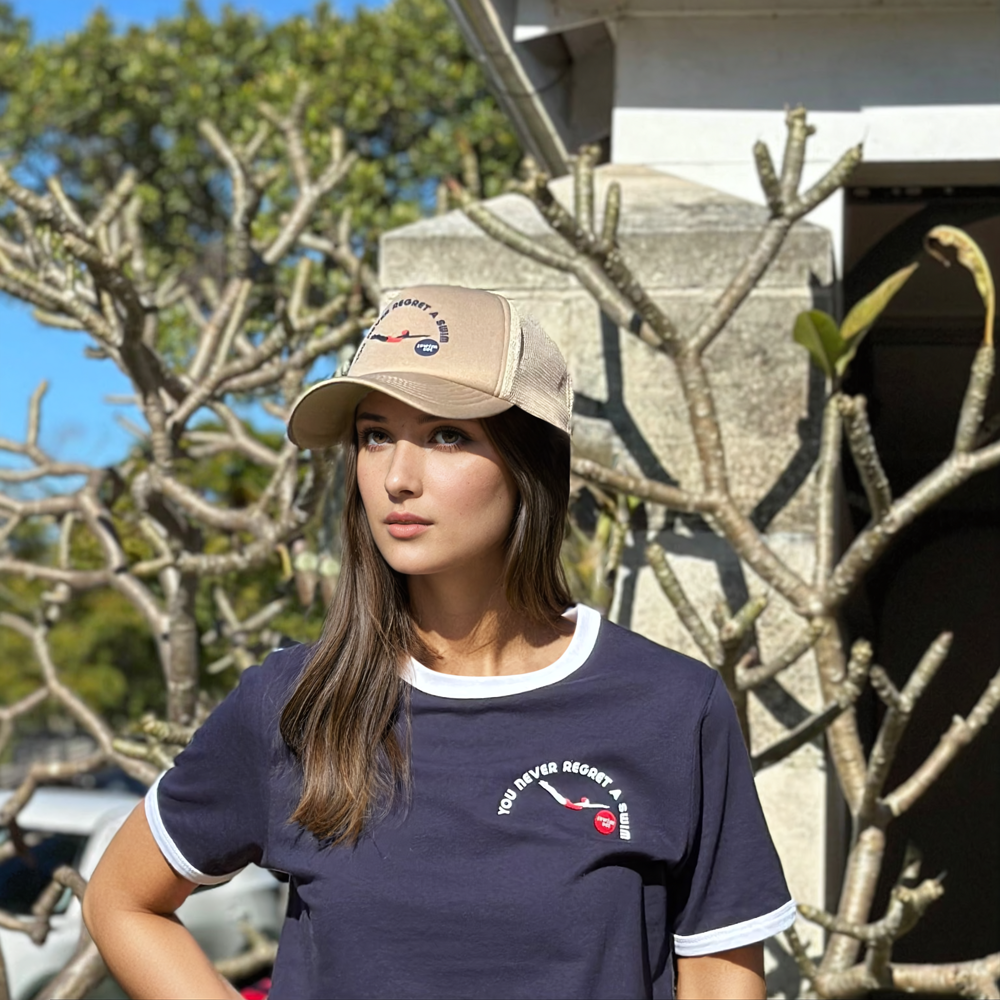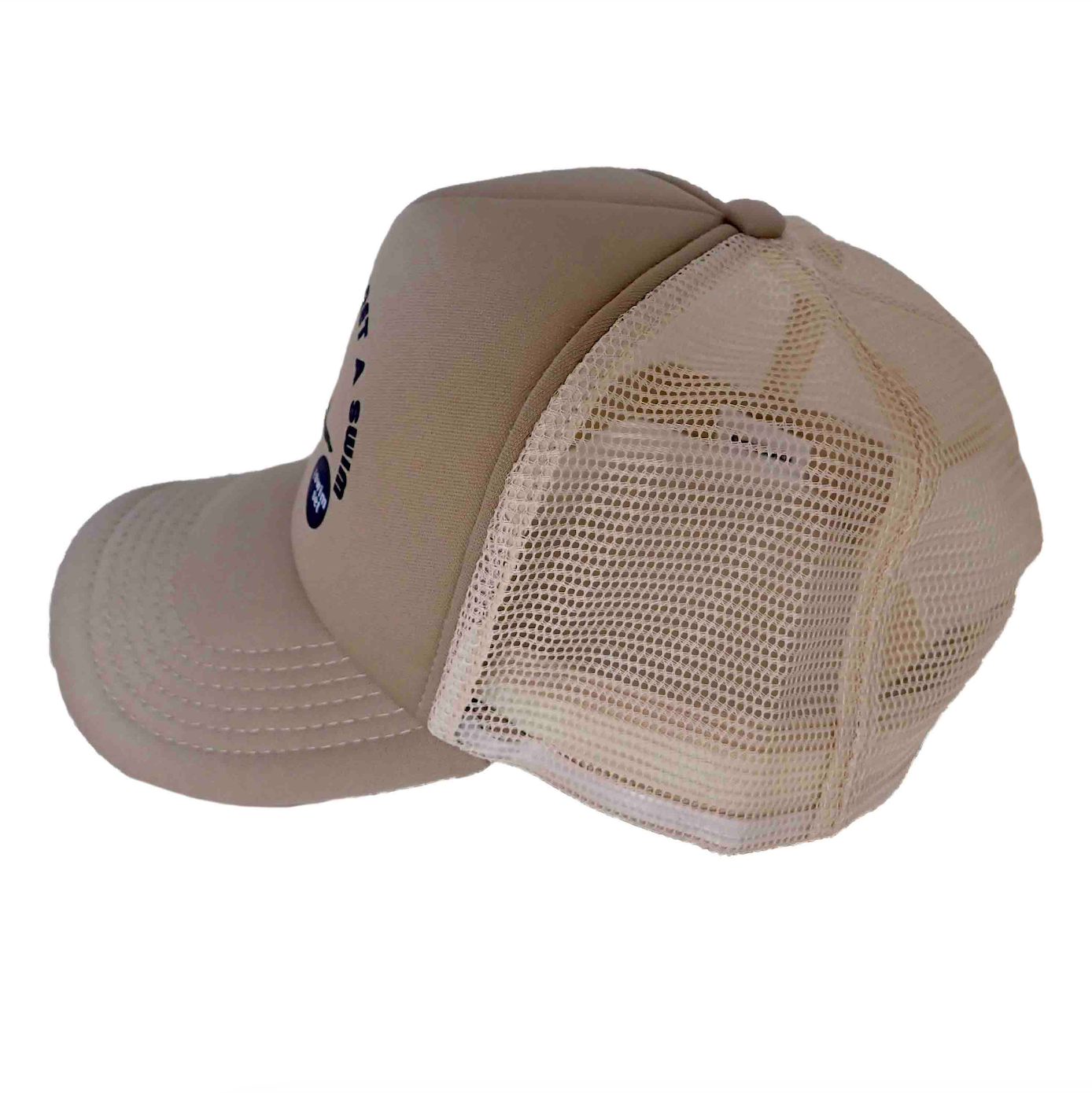 Curved brim, Adjustable snap back closure, ventilated mesh back panelling