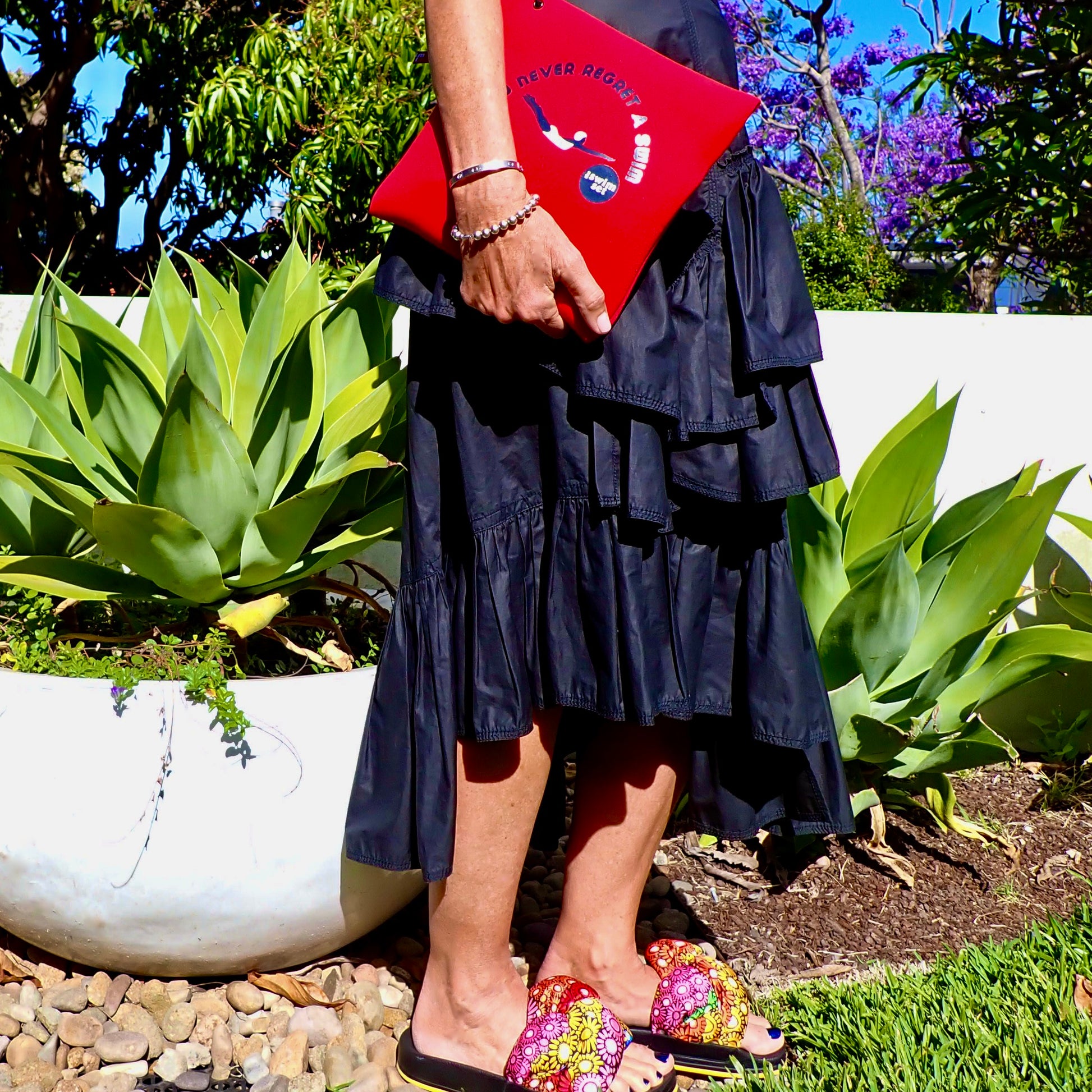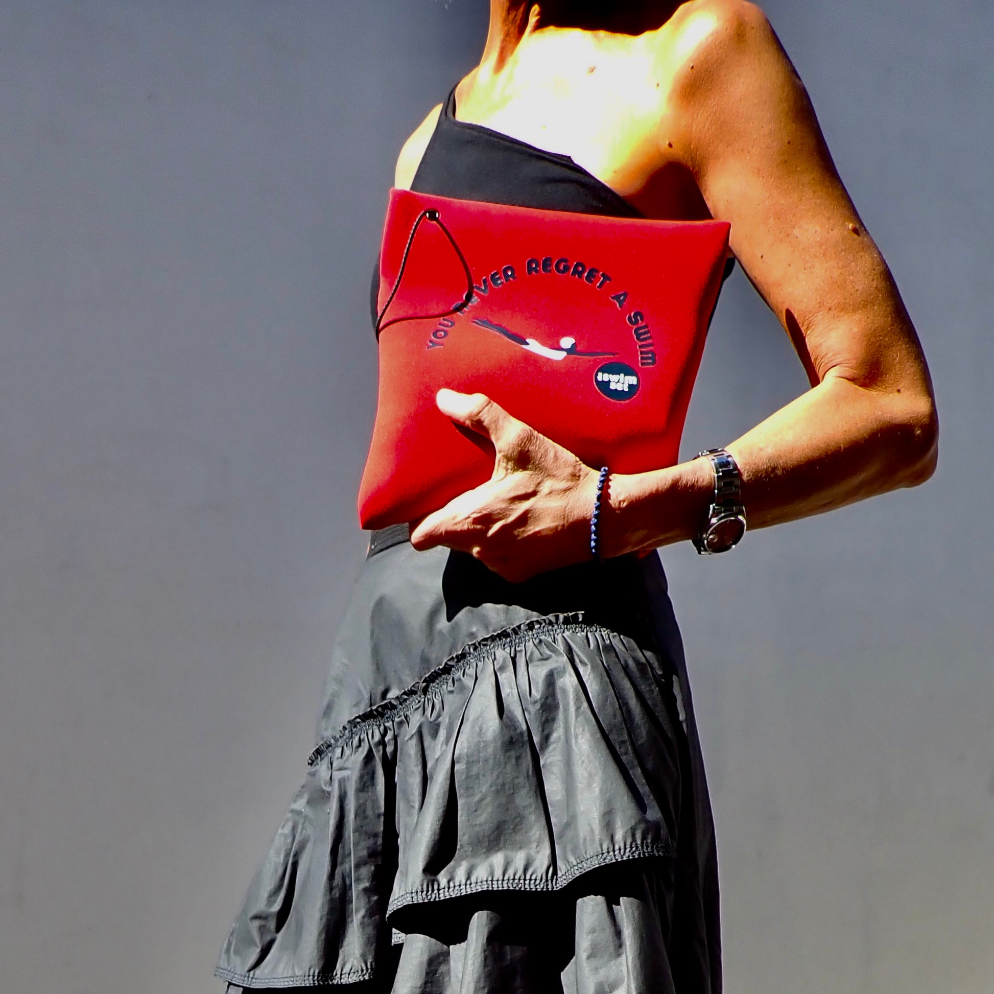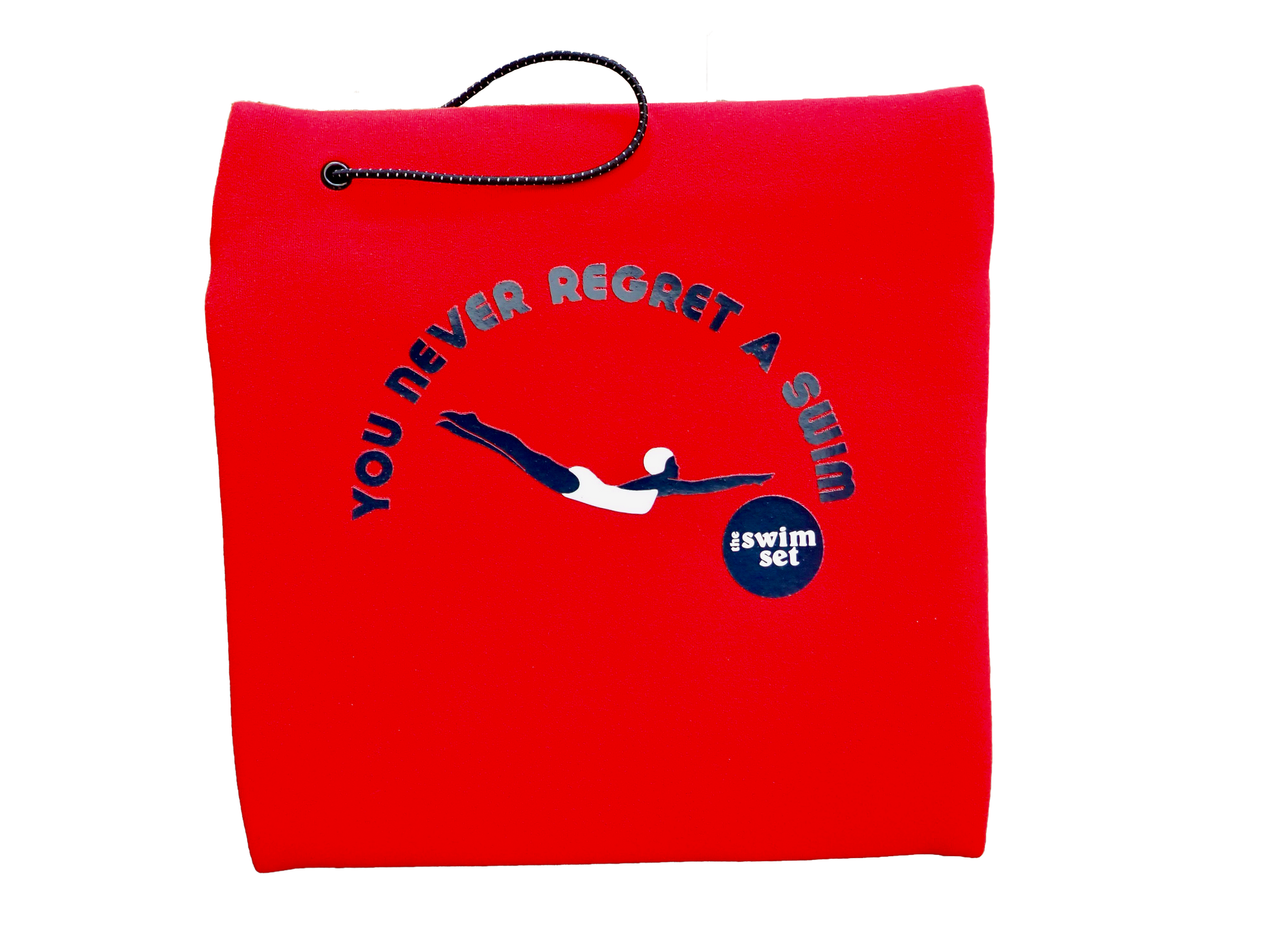 Designed with love. The pouch is custom printed with our "You never regret a swim" mantra and retro diver motif.
