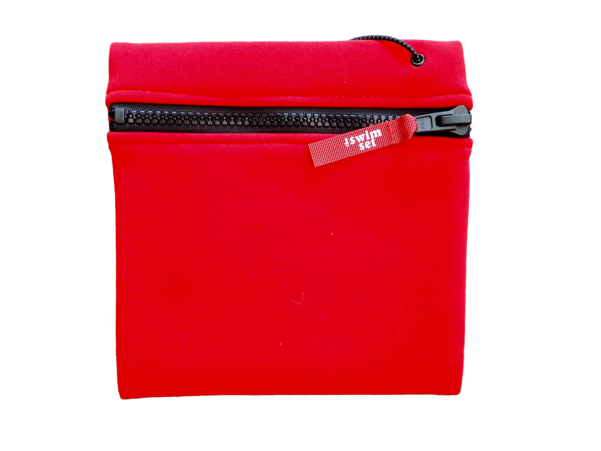 Features a chunky YKK zip with The Swim Set pull tab and an elastic wrist strap.