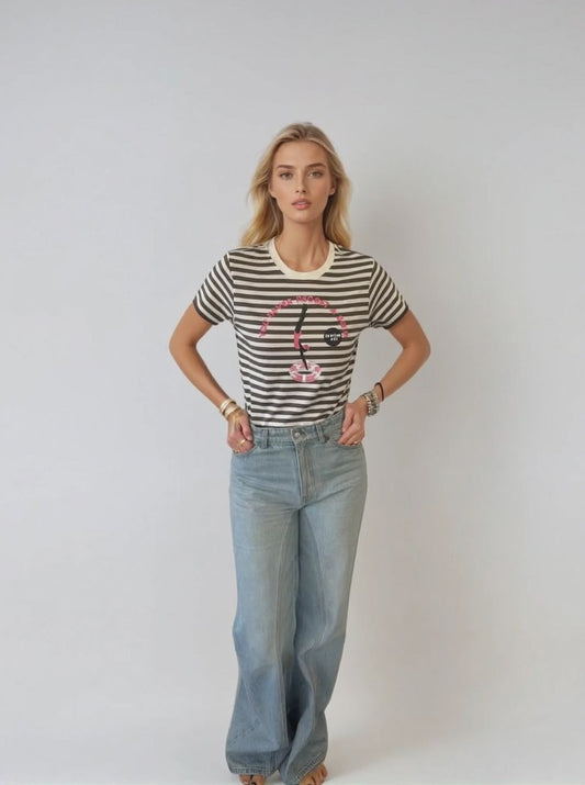 A lovely fun & feminine t shirt! Beautiful fabric, well made garment. I love the relaxed style, looks great with a linen skirt, jeans or shorts.