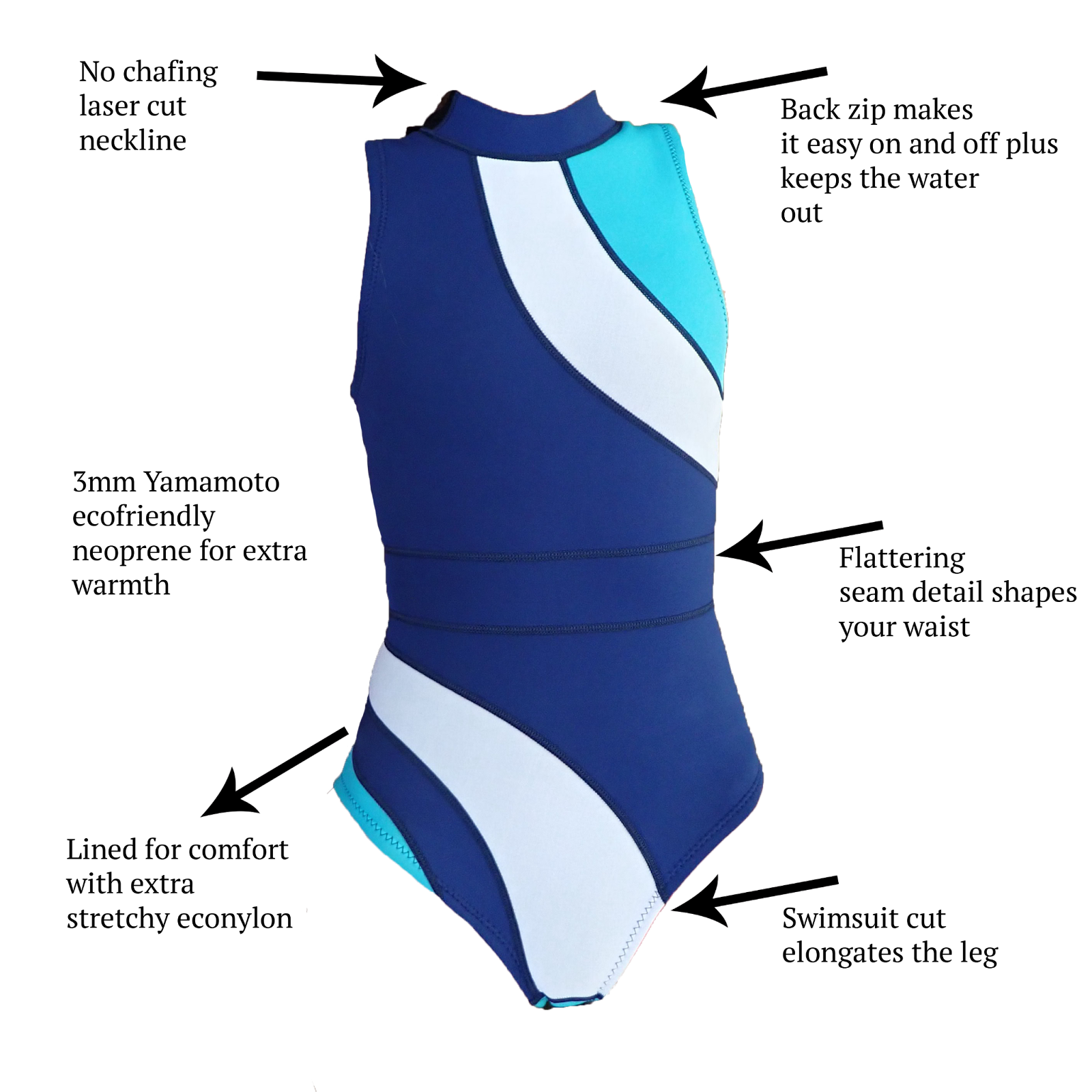 Designed in Australia. For women by women. A super stylish sleeveless wetsuit. For women who want to look good, wearing their wetsuit daily.